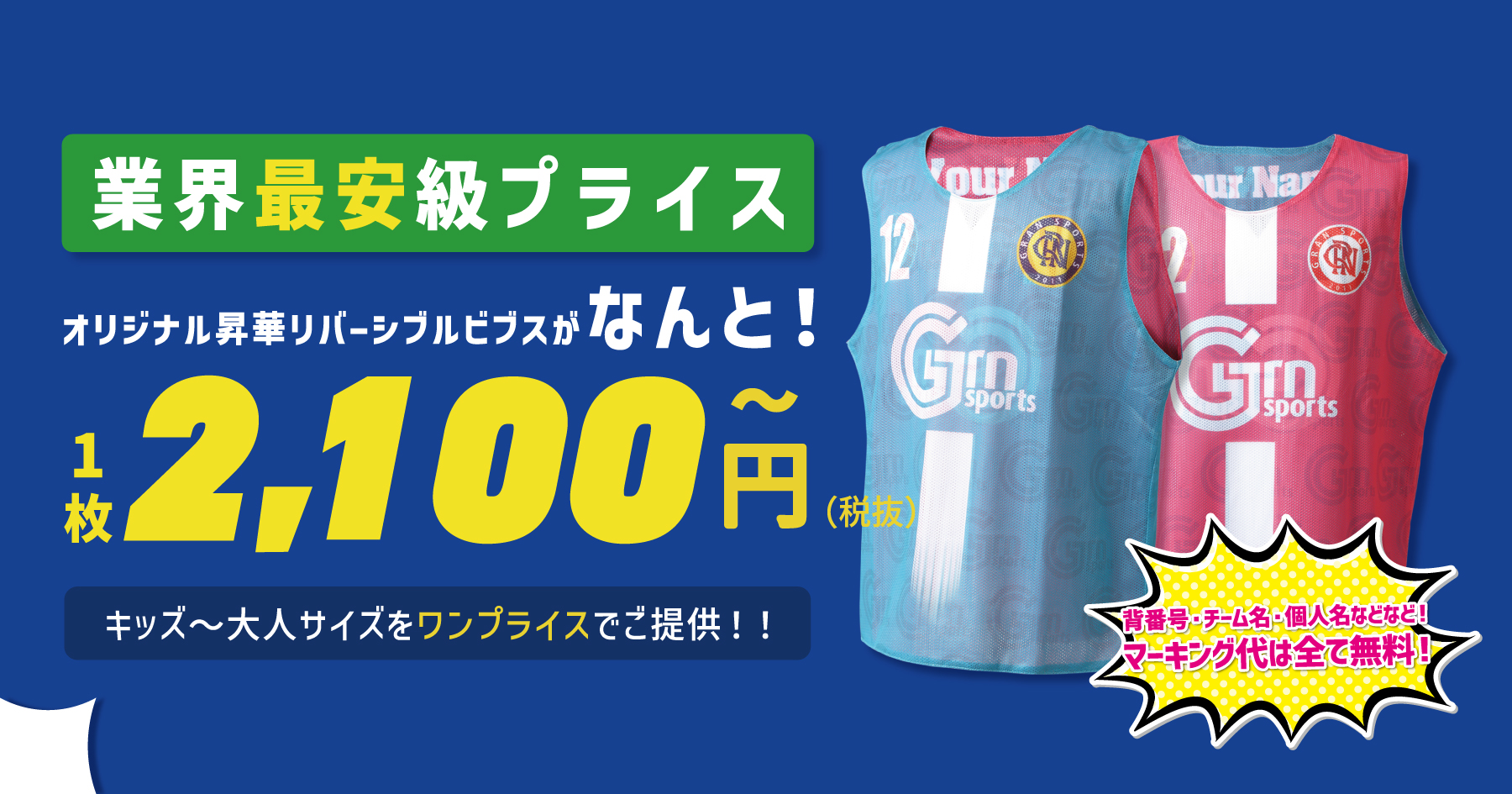 高品質なオリジナル昇華リバーシブルビブスを業界最安級の格安プライスでご提供!